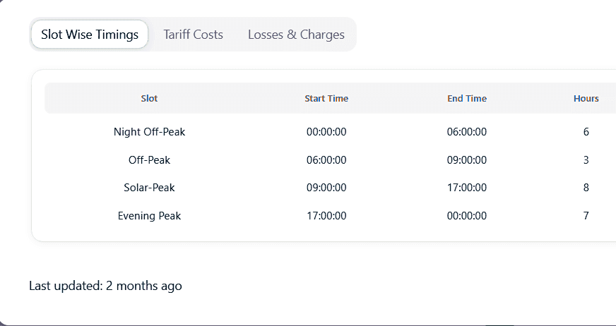 Select and add up to-date policies and regulations such as ToD tariff slots, net metering, banking rules etc. to your scenarios